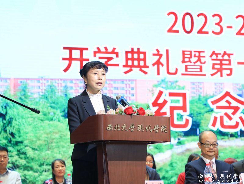 我校新同學(xué)家長(zhǎng)代表顧虹女士致辭,她代表2023級(jí)全體學(xué)生家長(zhǎng),向?qū)W校的各位領(lǐng)導(dǎo)和老師表示崇高的敬意和親切的問候。她說,西北大學(xué)現(xiàn)代學(xué)院是一所非常優(yōu)秀的大學(xué),有著光榮的傳承史,此次受邀前來參加孩子的開學(xué)典禮,看到學(xué)校宏偉的建筑,先進(jìn)的教學(xué)設(shè)施,優(yōu)秀的教師團(tuán)隊(duì),完備的生活設(shè)施,以及秦嶺山腳下美麗的校園,對(duì)學(xué)校為孩子提供了一個(gè)非常好的學(xué)習(xí)和生活環(huán)境表示感謝,同時(shí)也對(duì)學(xué)校和老師們辛勤的付出,表示深深的感謝,希望孩子們珍惜寶貴的大學(xué)生活,努力學(xué)習(xí),奮發(fā)有為,不辜負(fù)父母家人和母校的期望,在西大現(xiàn)代這片沃土上成就精彩人生。